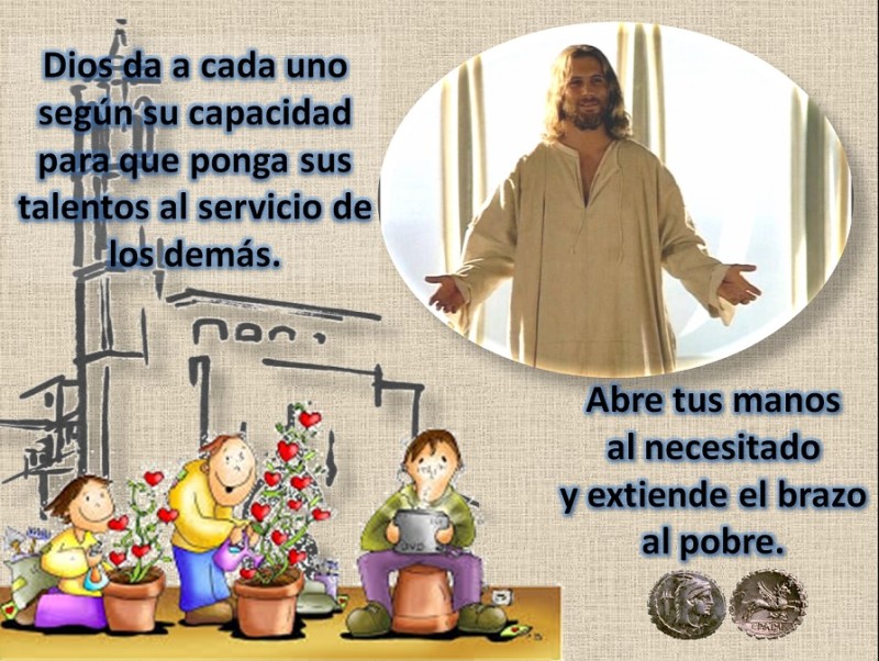 En aquel tiempo, dijo Jesús a sus discípulos esta parábola: «Un hombre, al irse de viaje, llamó a sus empleados y los dejó encargados de sus bienes: a uno le dejó cinco talentos de plata, a otro dos, a otro uno, a cada cual según su capacidad; luego se marchó. El que recibió cinco talentos fue en seguida a negociar con ellos y ganó otros cinco. El que recibió dos hizo lo mismo y ganó otros dos. En cambio, el que recibió uno hizo un hoyo en la tierra y escondió el dinero de su señor. Al cabo de mucho tiempo volvió el señor de aquellos empleados y se puso a ajustar las cuentas con ellos. Se acercó el que había recibido cinco talentos y le presentó otros cinco, diciendo: «Señor, cinco talentos me dejaste; mira, he ganado otros cinco.» Su señor le dijo: «Muy bien. Eres un empleado fiel y cumplidor; como has sido fiel en lo poco, te daré un cargo importante; pasa al banquete de tu señor.» Se acercó luego el que había recibido dos talentos y dijo: «Señor, dos talentos me dejaste; mira, he ganado otros dos.» Su señor le dijo: «Muy bien. Eres un empleado fiel y cumplidor; como has sido fiel en lo poco, te daré un cargo importante; pasa al banquete de tu señor.» Finalmente, se acercó el que había recibido un talento y dijo: «Señor, sabía que eres exigente, que siegas donde no siembras y recoges donde no esparces, tuve miedo y fui a esconder mi talento bajo tierra. Aquí tienes lo tuyo.» El señor le respondió: «Eres un empleado negligente y holgazán. ¿Con que sabías que siego donde no siembro y recojo donde no esparzo? Pues debías haber puesto mi dinero en el banco, para que, al volver yo, pudiera recoger lo mío con los intereses. Quitadle el talento y dádselo al que tiene diez. Porque al que tiene se le dará y le sobrará, pero al que no tiene, se le quitará hasta lo que tiene. Y a ese empleado inútil echadle fuera, a las tinieblas; allí será el llanto y el rechinar de dientes.»»